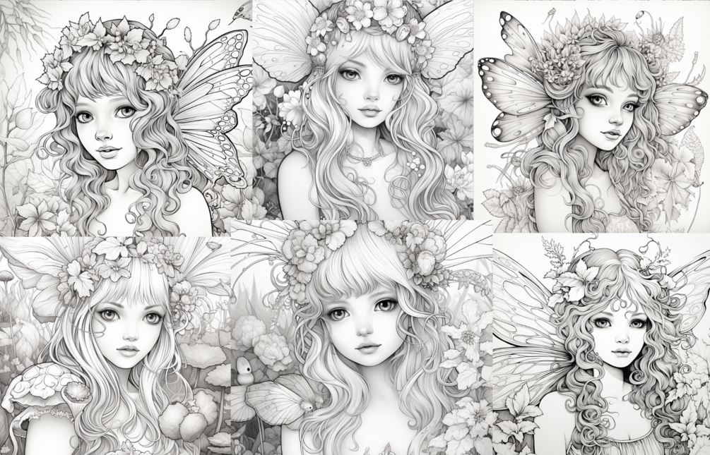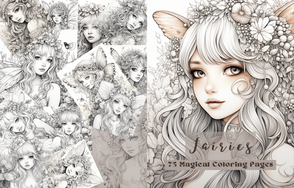 Embark on a magical coloring journey with our enchanting fairy coloring pages! Created using the innovative MidJourney technique, each of the 75 designs is a unique portal to a world of fantasy and creativity.