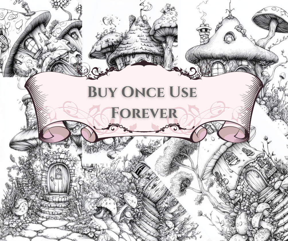 This delightful collection features intricately hand-drawn black-and-white coloring pages perfect for adults, teens, and kids who adore fantasy, cottagecore, and all things enchanted.
