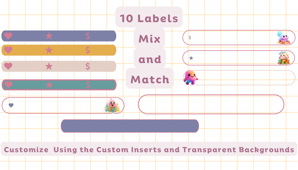 -10x- Labels With Transparent Backgrounds and Custom Inserts